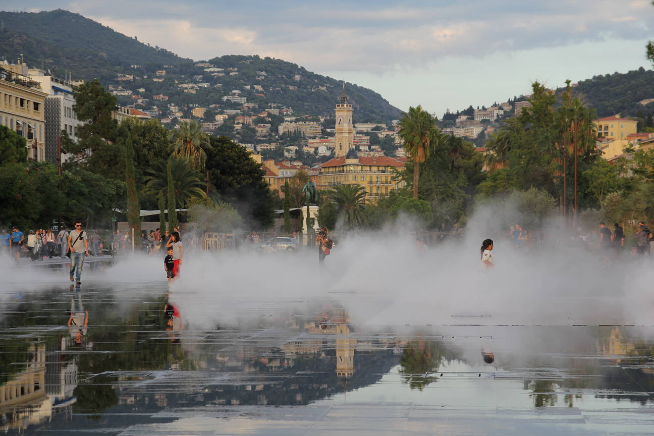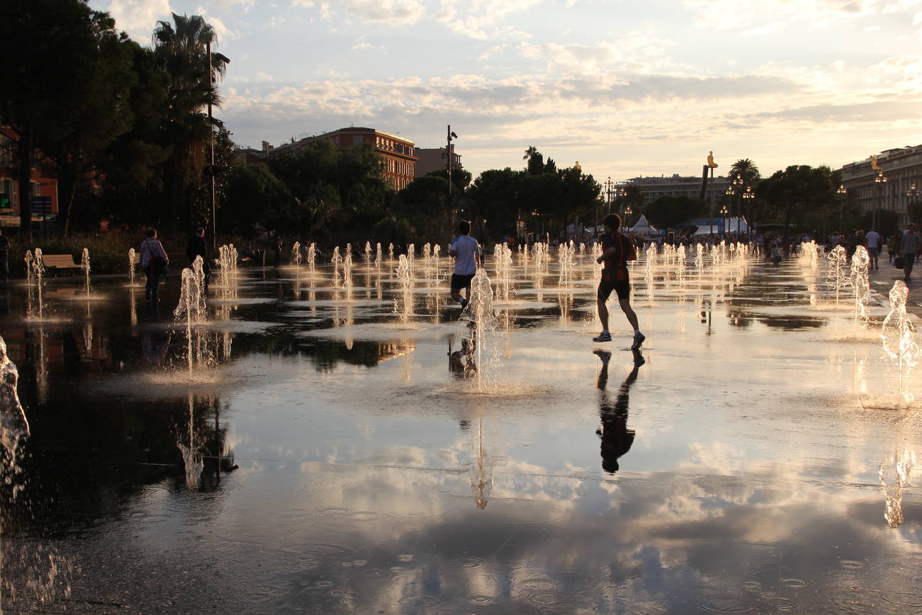 We wanted to take a free city tour but unfortunately our guide never showed up. Therefore, we explored Nice on our own. I think the most impressive sights we noticed were the beach and promenade 'Promenade des Anglais' and park with a spacious fountain. The fountain was filled with many, many kids at all times. People were running through it and playing with the water and steam. During the day we managed to connect to internet and work in a very nice park near the beach. Later in the evening we walked up a hill to see the city from the top and visit a relatively big waterfall that could be seen from the city center, down the hill.